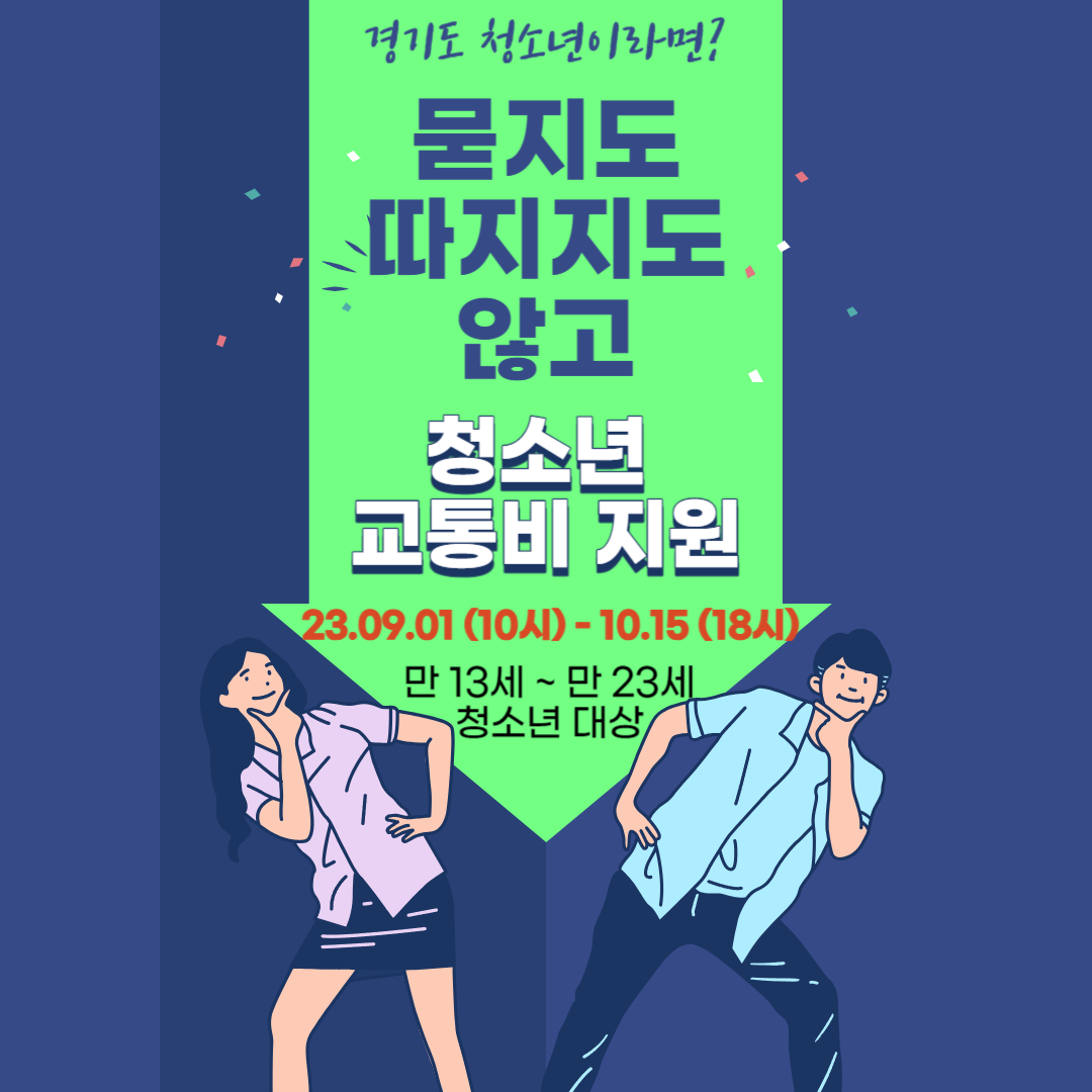 - 신청일 기준 경기도에 거주하는 만 13세 ~ 만 23세 청소년
