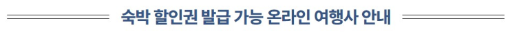 - 사용방법 : 참여 온라인 여행사를 통한 숙박 할인권 발급 및 사용(선착순 1인 1매 사용 가능)